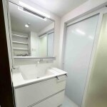 ホワイトを基調とした収納充実な洗面