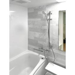 浴槽や床を断熱仕様にし、以前のユニットバスと比較すると圧倒的な差があります。 壁のパネルはTOTOサザナの人気色、「パティオホワイト」を採用しました。 全体的にモノトーンでコーディネートし、モダンでシンプルな空間に。 寒さも軽減、落ち着いた空間でお風呂時間をゆったりとした気分で味わえます。