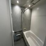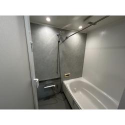 石目調のシックな空間から清潔感溢れるブルーとホワイトの浴室に