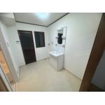 クロスや床が経年劣化で汚れが落ちず、洗面室が暗い印象でした。