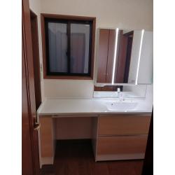 洗面台下部の右半分には収納を、左半分は空きスペースになっているタイプにしたいとのことでした。 水漏れのため工期はなるべく早くを希望しておりました。