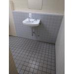 手洗い、鏡取替、壁タイルは一部補修。床タイルは全面貼替しました。