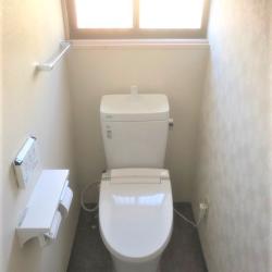少しでも費用を抑えたいとのことで、 お客様の希望を満たしコスト面を考慮した提案をさせて頂きました。 既存のトイレはすべて解体し、クロスとクッションフロアぜ内装を仕上げました。 トイレはLIXILのアメージュZを設置させて頂きました。