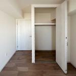 床との段差がない扉に変更し、荷物の出し入れがしやすくなるよう配慮しました。また、上の棚にも簡単に荷物を載せられるように、収納扉は天井から床までの大きな折戸を採用し、収納の使い勝手を向上させました。クローゼットの下地も補強し安心してお使い頂けるようにいたしました。
