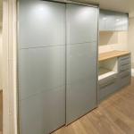 お布団などの大きな収納も可能な押入として活用できるように、奥行きを広げて、半分を洋服掛けスペースに分けました。また、床はフラットに仕上げ、収納の開閉をより楽で快適ににするため、大きな3枚連動引戸をご提案させていただきました。