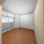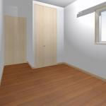 こちらのお部屋のクローゼットは3つの収納スペースが組み合わされています。お布団など収納できる押入のような使い方ができるように、奥行きを広げて、半分は押入、半分は洋服掛けに用途別の仕切り分けをして欲しいです。物の出し入れがしやすいように床はフラットにして欲しいです。収納扉や入口扉やフローリング、壁紙は他のお部屋とイメージを合わせていただければと思います。