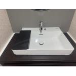 オシャレ度の高い洗面化粧台に取替えたいとご要望で、好みの鏡を使って欲しいと施主様支給の鏡を取付けご希望でした。