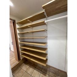 大容量のシューズクロークを新設。使い勝手が良いように、可動式をセットしました。カバンやアウターも楽に収納できるよう、ハンガー掛けも設置し、常にスッキリとした玄関が保てるようにしました。