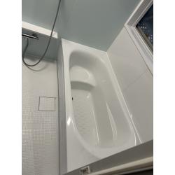 TOTOサザナ1616タイプにリフォームいたしました。白ベースに淡い水色のパネルが爽やかで、明るい空間となりました。浴槽も広くお使いいただける様になり、また価格面でも大変ご満足いただけました。