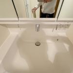 同じ横幅サイズで奥行きはスリムになりましたが、洗面ボウル奥行きひろびろ設計でサイズ感はあまり変わっていません。洗面水栓がタッチレスになり清掃性もアップしました。