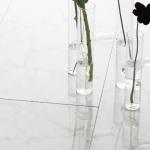 玄関から廊下にかけて全体的にホワイトで統一し、床は高級感のある大理石風のフローリングを施工しました。 ビアンコ柄のフローリング、アクセントクロスが印象的な造作ニッチで施主様がイメージされていた”ホテルライク”な空間を演出。