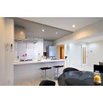 リビングを広くしたい、段差をなくしたいとのことでしたので和室をLDKに取り込みました 。 段差をなくし天井に少し高さを出しているので以前に比べ開放的な印象に。 ホテルライクな空間をご希望されていた施主様のイメージに合わせて、全体をホワイトで統一しフローリングは大理石風の高級感がある【DAIKEN ハピアオトユカフロア45 ビアンコ柄】を選定しました。