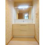 3面鏡と引出し収納式の使いやすい洗面化粧台をご提案しました。