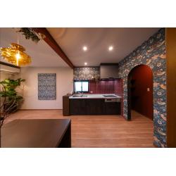 間取りはそのままに、壁紙やカーテンでお施主様の「好き」を形にしました。 さらに、前の持ち主の方が残してくれたアンティークな食器棚がデザインのインスピレーションに! 「玄関を開けると、そこはモリスの世界」好きなテイストで彩る、豊かな暮らしを実現しました.