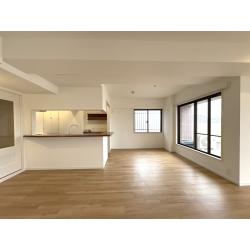 白を基調とした明るく開放的なリビングへと生まれ変わりました。 床には温かみのあるナチュラルカラーのフローリングを採用し空間全体がやさしい印象に。 壁や天井をホワイトで統一することで、窓ら差し込む自然光がより引き立ち広々とした雰囲気を感じられます。 キッチンまわりもすっきりとしたデザインに仕上げました