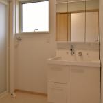 洗面化粧台と洗濯機スペースを確保し、窓を設置して明るい空間にしました。