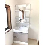 収納棚が多くスッキリした清潔感ある洗面台で身支度が快適に!