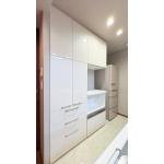 キッチン吊戸棚と壁を撤去して開放的なレイアウトに/家電収納スペースとダストワゴン付のカップボードを採用