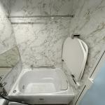 断熱性・清掃性・デザイン性に優れた最新仕様のTOTO製シンラWL Cタイプを採用致しました。上質な入浴体験を叶える付加機能浴槽に加え、皮脂汚れを落としやすく保つ「床きれい快適セット」も組み合わせることで、掃除の負担を軽減しながら毎日が快適に。壁面には高級感のある大理石調パネルを使用し、空間全体に上品な雰囲気を演出しています。 さらに、入り口の段差も解消し、子育てエコホーム支援事業の補助金を活用することで、コストを抑えつつ安全性と快適性を両立しました。給水・給湯の配管には耐久性と柔軟性に優れた架橋ポリエチレン管を採用し、将来を見据えた安心の設備更新も実現しています。 高性能な設備と補助金制度を上手に組み合わせることで、機能性・デザイン・コストパフォーマンスの三拍子がそろった浴室リフォームとなりました。