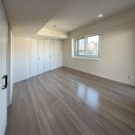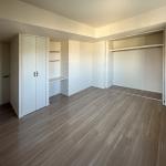西側寝室のリフォームが完了し、収納力と快適性が大幅に向上しました。 ご要望のウォークインクローゼットの一部を廊下側から利用できる収納スペースに分割し、棚収納と奥行きのあるクローゼットに変更しました。衣類や小物など、様々なものを効率的に収納できるようになりました。また一部カウンターを設置し、小空間のパソコンスペースも新設。これまで壁一面に設置されていた棚板を撤去し、新たに設置した折戸付きのクローゼットは、扉にベリティスホワイトアッシュ柄を採用。白い壁・天井クロスとの組み合わせで、明るく清潔感のある印象になりました。 床材には、ナオスフローリングのラテウォールナットLG色を選びました。落ち着いた色合いと木目の美しさが、寝室に上質な雰囲気をもたらし、快適な空間を演出します。 今回のリフォームにより、収納スペースが格段に増え、使いやすくなっただけでなく、内装も明るくモダンに生まれ変わりました。収納扉のホワイトアッシュ柄と、床のラテウォールナットの色合いが調和し、心地よく、機能的な寝室空間となりました。
