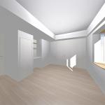 現在、西側寝室には、ウォークインクローゼットと壁一面に備え付けの棚収納があります。この収納スペースの構成を使いやすく変更したいと考えています。具体的には、ウォークインクローゼットの一部を廊下側から利用できる収納スペースとして独立させ、内部は棚収納とパイプスペースを備えたクローゼットにしたいです。また、壁一面に設置されていた棚板は撤去し、折戸付きのクローゼットを新設したいと考えております。寝室と廊下の両方から収納を活用でき、寝室内の収納力も向上して、機能的で使いやすい収納になる事を期待しています。