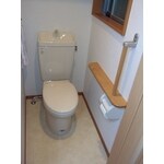1階トイレ 施工後です。手すりもついて、安心してご利用いただけます。