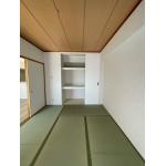押入の襖を3枚引戸に変更いたしました。 左側は、お布団収納、右側はお洋服と趣味の釣り竿の収納スペースといたしました。