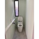 ダーク系のアクセントクロスで落ち着いたトイレ