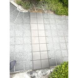 玄関アプローチのタイルが劣化による損傷が酷いので補修をして欲しいとご相談頂きました。タイルのひび割れ部分をあえて違う色のタイルでアクセントをつけた張替をご提案させていただきました。