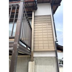 2階庇を支えている柱が1本無くなり、もう一本も根元から腐食している為、直したいとご相談頂きました。木製の柱から腐らないアルミ柱への取替をご提案し、既存の雨戸と同色の違和感のない仕上がりになりました。