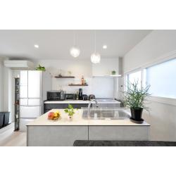 LDKを見渡せるオープンなアイランドキッチン