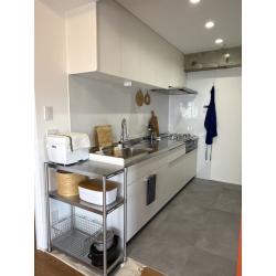 お掃除しやすいキッチンにしたい。大きな収納を置いてスッキリさせたい。
