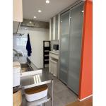 LIXILのキッチン・シエラを採用いたしました。ちょっと男前なステンレスとホワイトのカラーを融合したシンプルなキッチンです。タイルだったキッチン周りはパネルにして油汚れもサッと拭き取れるようになり、ガスコンロやレンジフードも手軽にお掃除できる仕様の設備をご提案いたしました。背面にはすりガラスで圧迫感の出ないカップボードを設置しておりますので、日ごろからスッキリとしたキッチンを実現することができます。