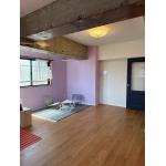 元々のリビングダイニングと2つの洋室をつなげて、大きな1部屋のリビングダイニングに変更いたしました。ブルーやパープル、ビビットなオレンジのアクセントクロスが効いた部屋にコンクリートの梁をあえてむき出しにすることで、まるでアートギャラリーのような個性的な空間が出来上がりました。水廻りはスッキリした中に快適な使い心地が可能な人気の設備を採用しております。
