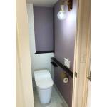 細部のお掃除が大変だと悩まれていた施主様に、Panasonicのアラウーノをご提案いたしました。激落ちバブルの自動洗浄機能付き、スキマレス設計のため、お手入れが断然ラクになりました。アクセントクロスに石目調パープルカラーを、ブラケットライトが目を惹くアクセントになり空間を広く見せ、おしゃれな雰囲気に演出できました。