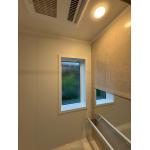 ベージュ系の壁パネルが明るく可愛らしい印象に。 広くゆったりとくつろげる空間となりました。 浴室乾燥機を付けさせていただきました。