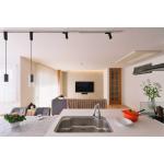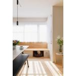 和室を取り込んでLDKの解放感をより高めました。リビングに隣接しているベッドコーナーは完全に仕切るのではなく「抜け」を造りつつ壁を造り ゾーンを分けることで落ち着いて休める空間に。 水廻り空間もデッドスペースになっていた廊下を取り込んですっきりした広い空間にレイアウト変更しました。