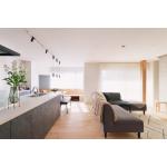 ビルごとご所有の施主様。和室には立派な6寸角の柱が入っているなど、マンションの一室とは思えない設えのお住いでした。ご要望にも思い入れのあるものを残したいということでしたので、柱は目立つ窓の近くに移設してアクセントとして生かしました。 広いお住いをより広々過ごしていただけるようにベッドコーナーをリビング内に取り込んだり、トイレ前のデッドスペースだった廊下を取り込んですっきりした水廻り空間を実現するなど、間取にも工夫を凝らしました。