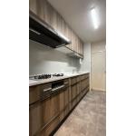 コンパクトなシステムキッチンと雰囲気をかえるクロス