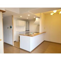 築25年のマンションリフォームです。 壁向きのキッチンを対面キッチンに交換します。
