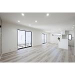 フローリングや照明演出によって、一気にモダン化。不要な壁を取り除いたことで空間に広がりが産まれました。奥の窓は横長のものに変更したことですっきりした印象に。