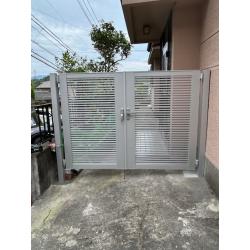 道路と敷地との境界付近に門扉を設置することで防犯性の向上を図れます。しかしながら、設置場所の地面が土地柄、傾斜があるため既製通りの寸法ではなく、子扉側の幅を小さくすることで地面との緩衝を回避し、長く使用いただけるよう工夫します。