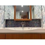 洗面台はそのままで壁紙とモザイクタイルの施工を行いました。