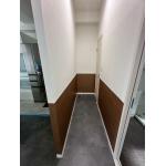 床には、耐久性が高く滑りにくい長尺シートを採用。 また、壁の腰高部分には、引っかき傷や汚れに強い腰高シートを貼るご提案をいたしました。 いずれの素材もペットとの暮らしに配慮したうえで、室内全体がすっきりと美しく見えるように仕上げています。
