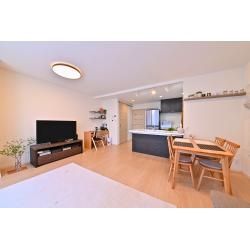 | その他採用機器・設備 | 【キッチン】 Panasonic ラクシーナ 扉柄:ヴィンテージブラウン(HX) カウンター:人造大理石 グラニュールホワイト(YS) 【内装】 天井:サンゲツ SP 2842 壁:サンゲツ SP 2804 床:丸玉木材 ニドムエコ クリアメイプル 巾木:DAIKEN ハピア ネオホワイト |