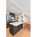 音楽のある暮らしを叶えるために、天井にBluetooth対応のスピーカー付ダウンライトをプランしました。 また、解体後に現れた壁内の空間を活かしてスパイス用にニッチ収納をプランし使い勝手を向上。 キッチンは機能性とデザイン性を兼ね備えたパナソニックのラクシーナを選定し、家族との繋がりを感じられる対面スタイルにしました。 移設したことにより明るく開放的な空間が生まれ、毎日の料理時間が楽しくなる、そんな空間が完成しました。
