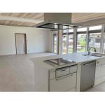 対面式のアイランドキッチンに。明るいLDKによく映えます。食洗機はメーカーオプションにない海外製のものを別途取付しました。