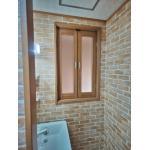 収納に洗面化粧台を新設し、階段吹き抜けに室内窓を取付ました。