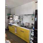 イエローが目を引くキッチンはLIXIL「シエラS」。既存の位置から右側に移設して、奥にはパントリースペースを設けました。