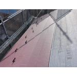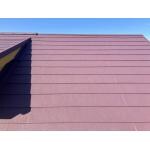 既存屋根材と同じようなお色で施工させていただきました。 スーパーガルテクトのシェイドワインを使用し、より鮮やかに美しい屋根に生まれ変わりました。 断熱材一体型の屋根材の為、耐久性と断熱性にも優れています。